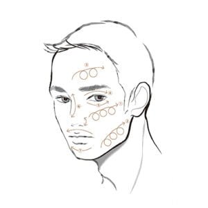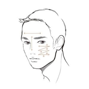 要選擇正確的顏色,請在面部腮腺位下使用兩種陰影混合