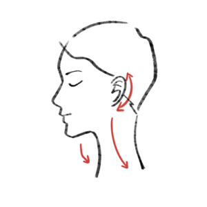 • 全面吸收後,再勻開耳背、耳根、頸部正面及側面(如圖)。